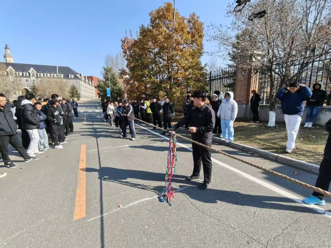 为深化长春建筑学院交通学院第二课堂育人实效,将体育竞技精神与学风建设深度融合。通过团队协作的对抗形式,打破传统学风建设的单一模式,让学生在汗水与协作中锤炼坚韧意志、培养责任担当,将“凝心聚力、拼搏进取”的拔河精神转化为日常学习中的攻坚动力,营造“比学赶超、互助共进”的优良学风氛围。2025年10月27日11:45,长春建筑学院交通学院于交通学院开展拔河比赛。交通学院2024级、2025级学子全员参与。