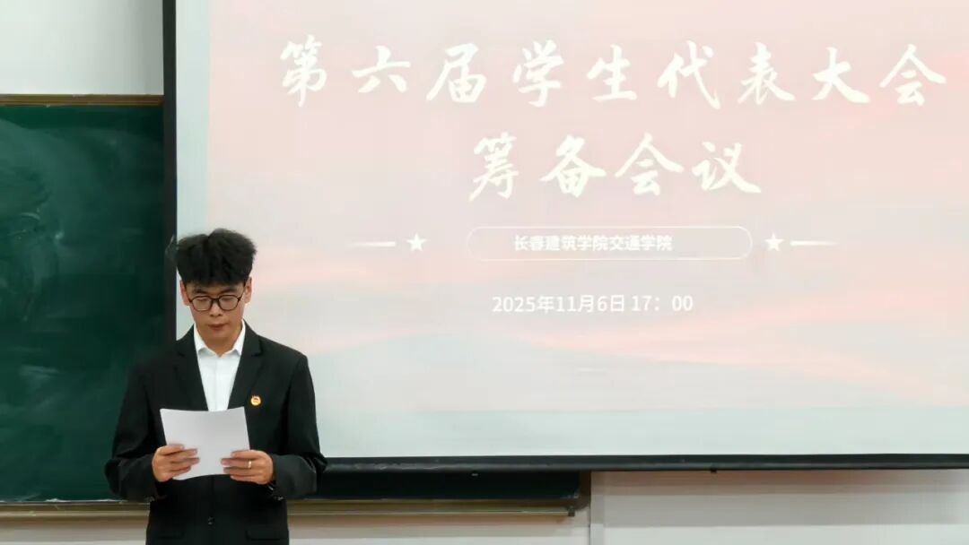 根据《中华全国学生联合会章程》、《吉林省学生联合会章程》等相关文件中关于“各级学联学生会组织定期、规范召开学生代表大会”的要求。长春建筑学院交通学院团委,在学院党总支的指导下,于2025年11月6日在教学楼五楼报告厅隆重召开长春建筑学院交通学院第六届学生代表大会筹备会议。参与本次会议的代表是由各班推选出少数民族同学、党员同学、普通同学,贫困家庭同学等60名学生代表参与。本次会议由学生许皓杰主持,重点部署了学代会提案征集相关工作,为正式会议的顺利召开筑牢基础。