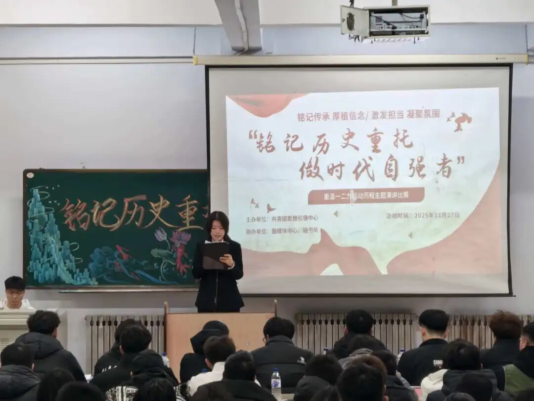 为深入传承红色基因、赓续红色血脉,引导青年学子在铭记历史中坚定理想信念,在缅怀先烈中厚植家国情怀,于新时代征程中勇担使命、自强奋进,2025年11月27日17:00,长春建筑学院交通学院在307教室成功举办"铭记历史重托,做时代自强者"主题演讲比赛。交通学院24级、25级全体同学踊跃参与。