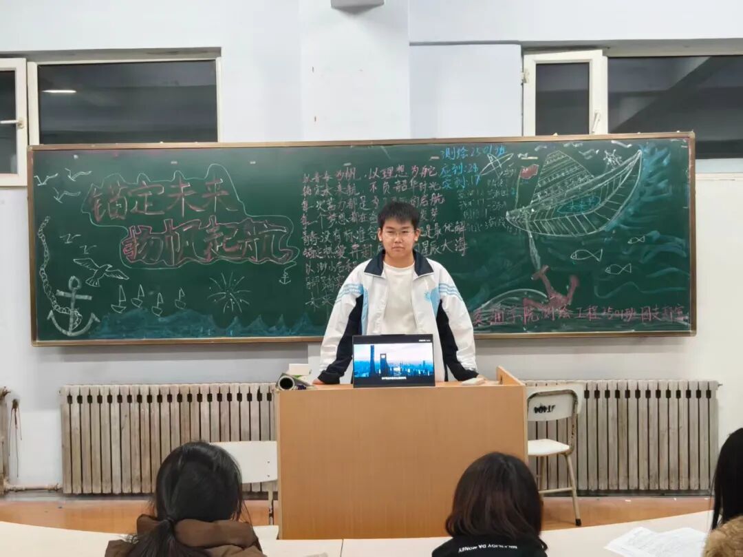 各班团支书先引出“锚定未来扬帆起航”的主题,围绕其核心内容逐步展开讲解。通过播放行业先锋访谈纪录片,生动展现职业发展的方式,结合就业市场调研数据,深入剖析“迷茫徘徊”现象的成因,清晰指出缺乏规划对个人成长、机遇把握的现实影响,引导在场同学深刻思考应如何将个人成长融入时代发展,以主动规划与切实行动,肩负起当代青年的使命与担当。