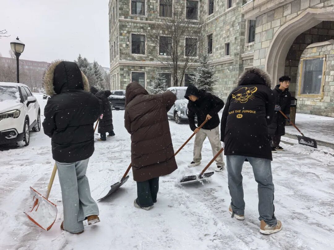为丰富学风建设路径,引导交通学子在躬身实践中筑牢责任意识、砥砺实干品格,展现新时代交通学子优良学风,2025年12月23日中午11:30,长春建筑学院交通学院学生以劳动实践为载体,开展清扫积雪暖心行动,切实保障全校师生出行安全。