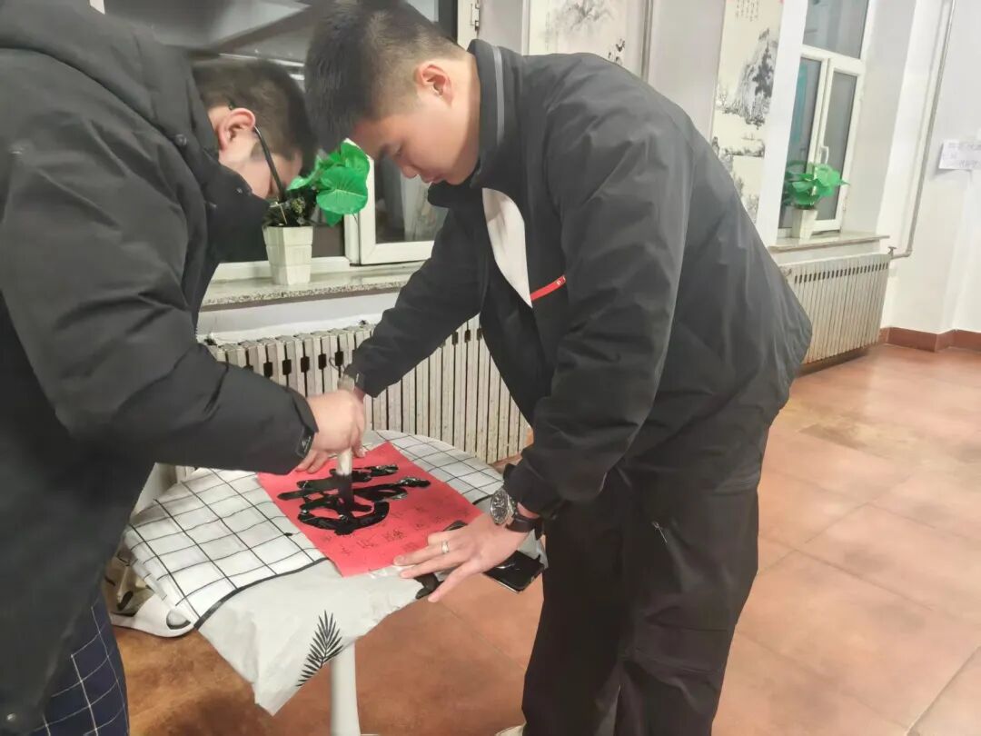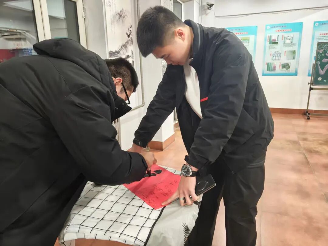 写福字区域墨香四溢,大红宣纸与笔墨纸砚整齐摆放,同学们踊跃参与、挥毫泼墨,一个个遒劲饱满的“福”字跃然纸上。既传递了美好期盼,也传承了传统书法文化。