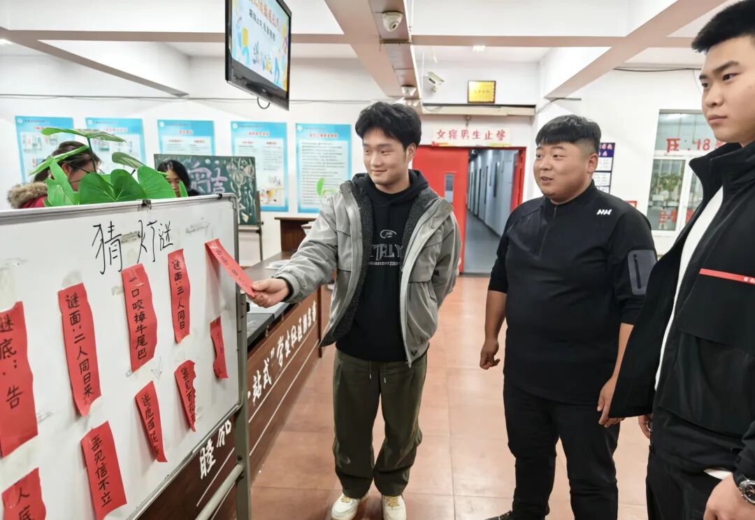 猜灯谜现场氛围热烈,社区工作人员提前筹备,五彩谜面整齐悬挂,内容涵盖传统文化、节日习俗等,难易适中。同学们驻足思索、相互探讨,在趣味互动中感受节日喜悦,加深对传统习俗的了解。