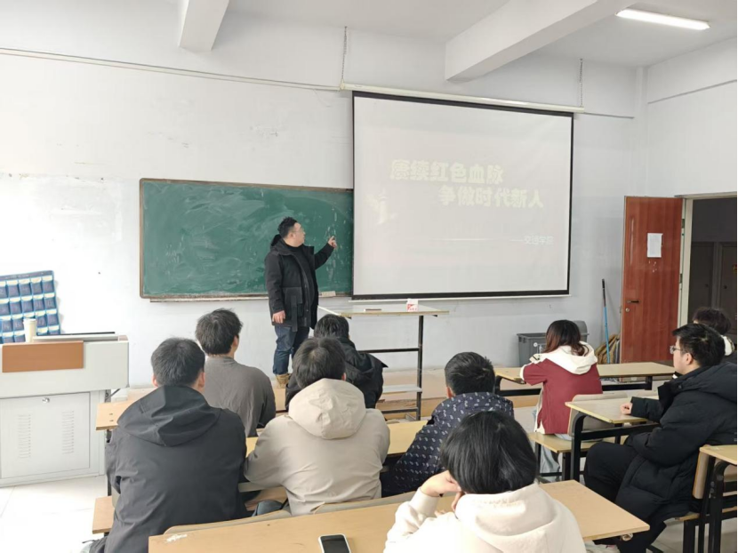 活动伊始,郭梓睿书记围绕红色历史、革命精神、青年担当三个维度展开讲解。他带领同学们重温党的百年奋斗历程,回顾革命先辈为国家独立、民族解放不懈奋斗的峥嵘岁月,深刻阐释红色血脉所蕴含的信仰力量、奋斗精神与为民情怀。团委书记郭梓睿强调,红色基因是青年成长成才的精神滋养,新时代大学生要从红色历史中汲取智慧与力量,把爱国情、强国志、报国行融入日常学习与生活。