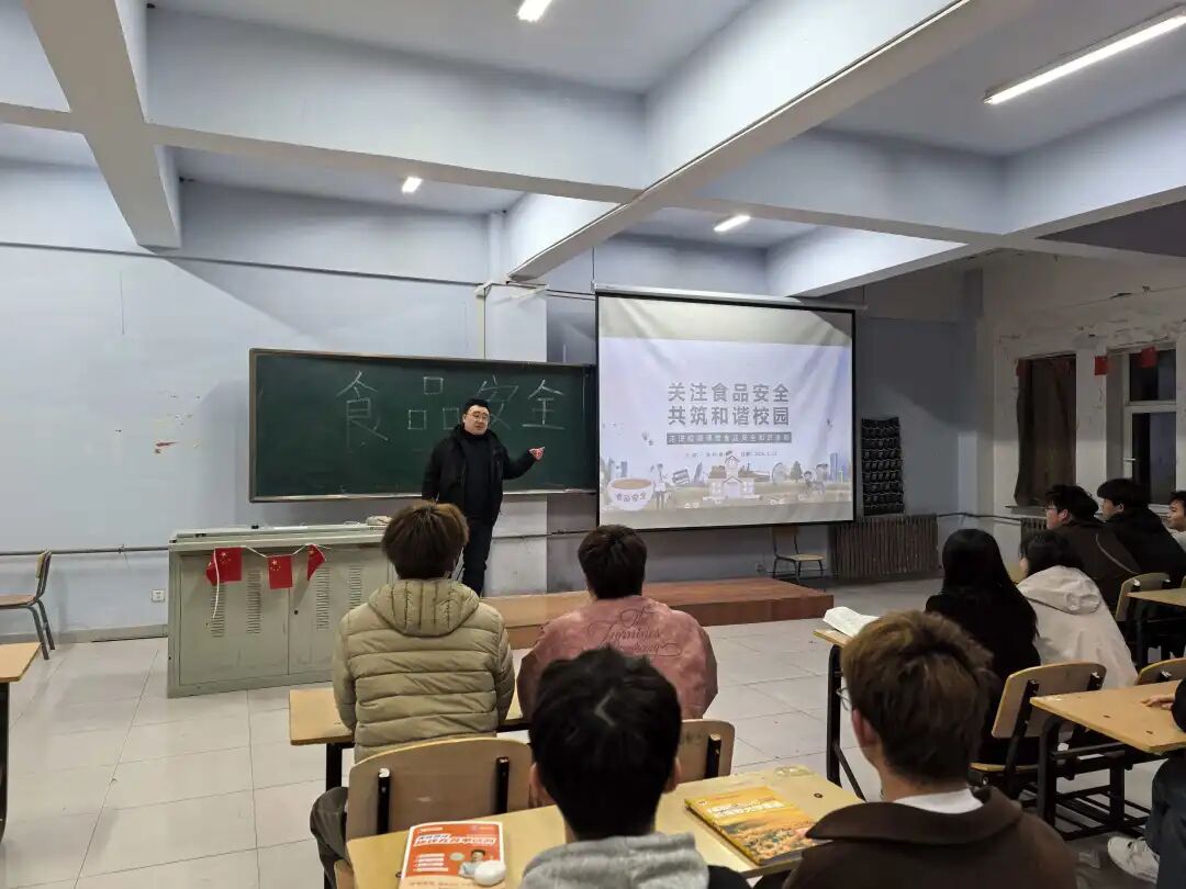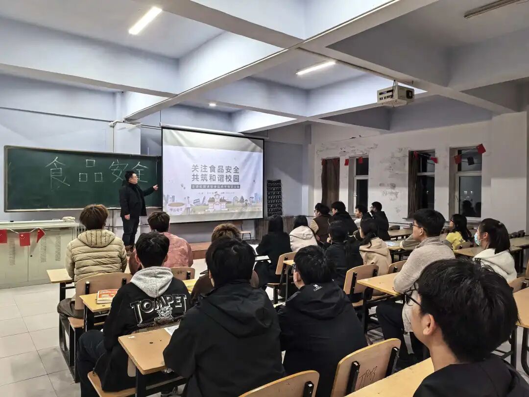 同时,团委书记郭梓睿针对春季食品安全特点,向同学们普及了食品储存、餐具消毒、常见食物中毒预防等实用知识,叮嘱大家在日常生活中提高警惕,不购买流动摊贩食品,不轻信无资质外卖平台,发现食品安全隐患及时向学校与相关部门反映。他强调,食品安全无小事,健康饮食是学习生活的基础保障,每一位同学都应树立“安全第一、健康至上”的理念,对自己的身体健康负责。