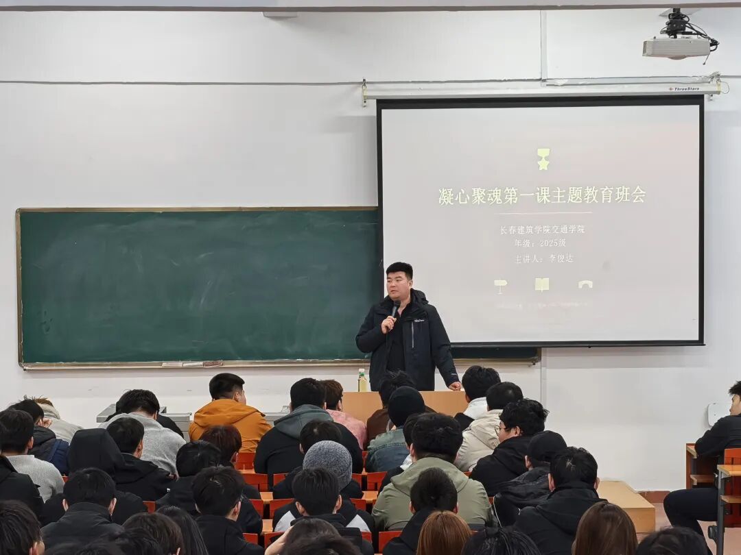 为筑牢青年思想根基、凝聚奋进力量,引导学生明确成长方向、涵养优良学风,2026年3月23日16时30分,交通学院于五楼报告厅组织召开“凝心聚魂第一课”主题教育班会。本次班会由25级辅导员李俊达主持,学院全体学生参与,现场秩序井然、氛围浓厚。